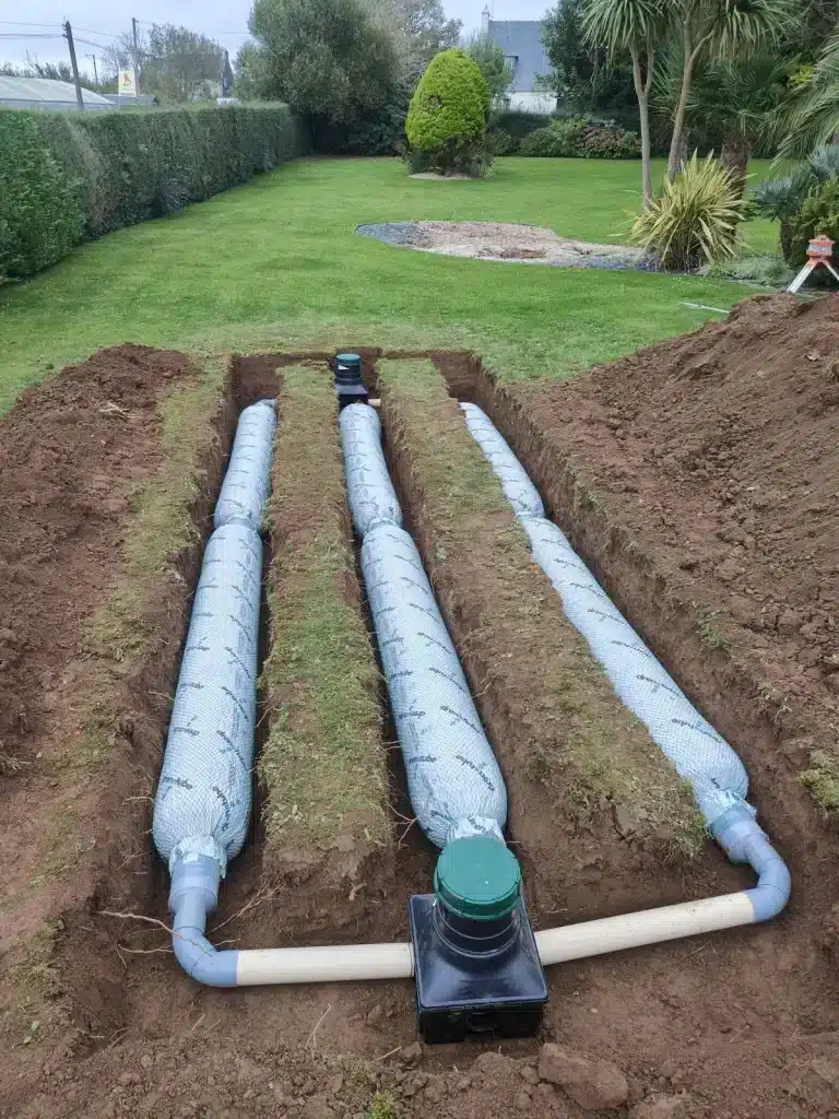 La longueur du système dépend de la surface à drainer, du volume d’eau à gérer, de l’intensité des pluies et de la capacité d’infiltration du terrain. Un calcul préliminaire peut fournir une première estimation, mais le dimensionnement final doit toujours être validé selon les caractéristiques réelles du site et les exigences techniques du projet.